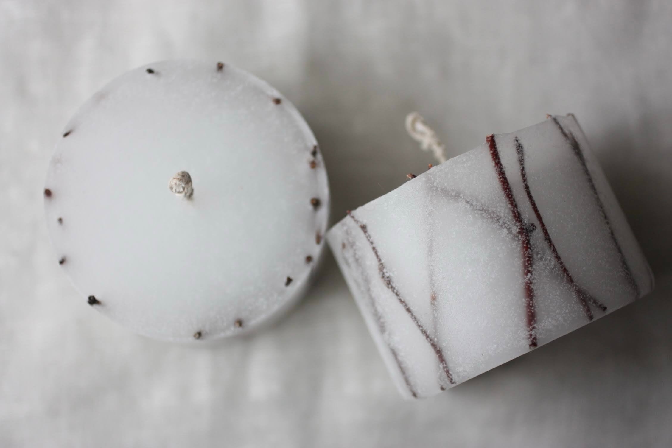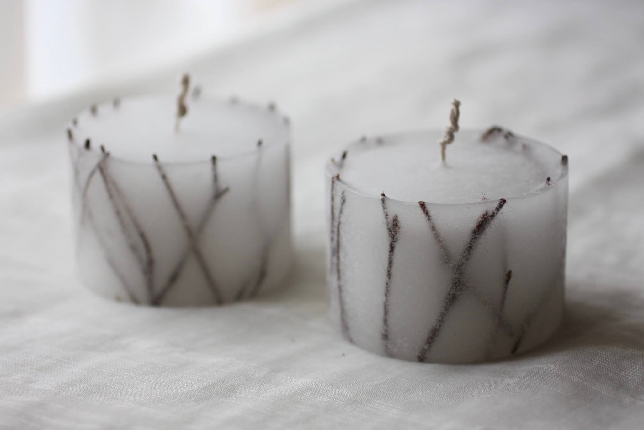 白い蝋に浮かぶ枝の影が、灯りに揺れて表情を変えます。